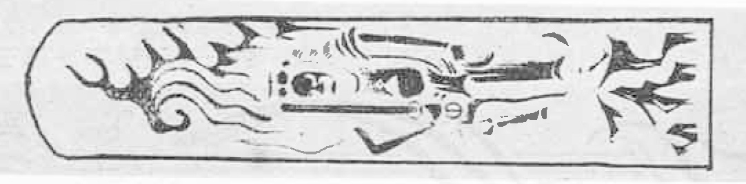 行の剣巻龍とは図案化した下図の如きをいう、眞の剣巻龍とは写実的な普通の剣巻龍をいう、剣巻龍は俗称で本来は倶利伽羅ともいうべきものです。この大振りの彫刻は末備前の特徴でもあります。この彫は忠光の刀にあったもので、末備前は比較的彫刻の余技があったと思われます。しかし興三左衛門祐定に彫物の少ない点を見るとこ工は彫物を得意としなかったのでしょうか。