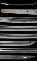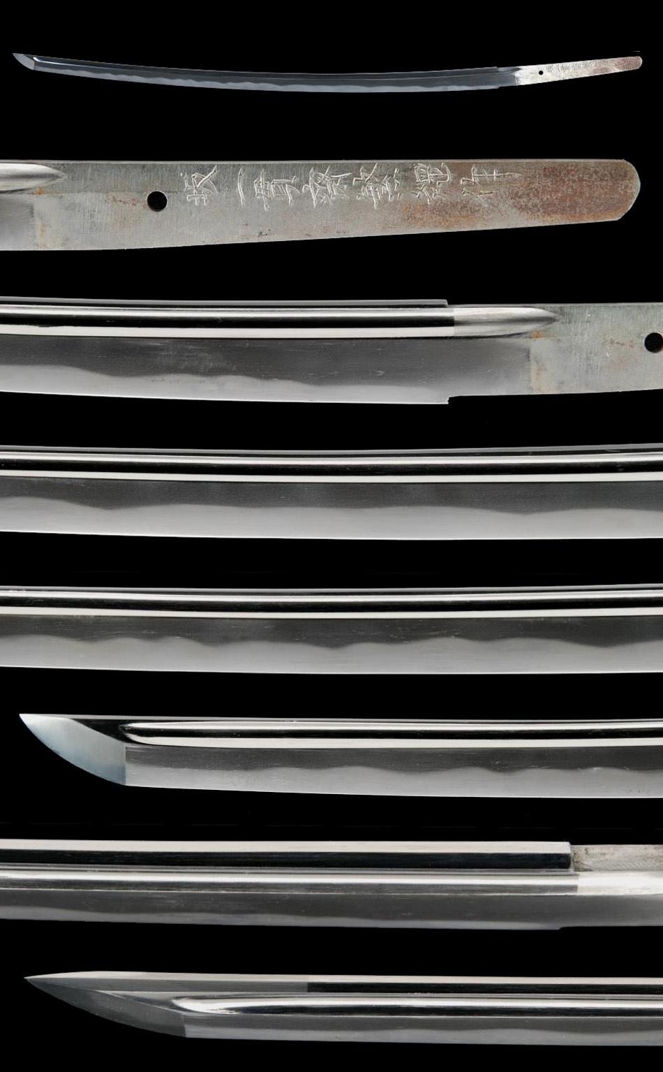 刃長:68.2cm(二尺二寸五分八厘) 反り:1.8cm 元幅:3.15cm 元鎬重:0.7cm 体配: 中切先、鎬造、庵棟。 |