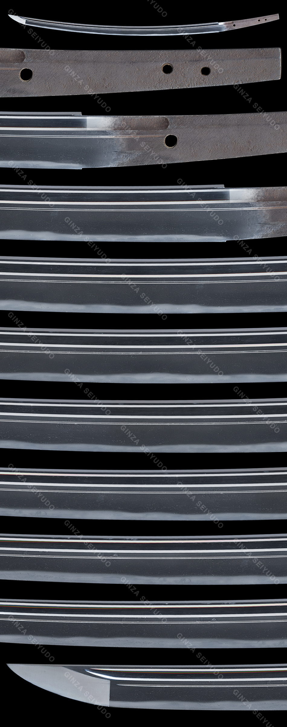 刃長:Blade length(Cutting edge): 71.6cm(二尺三寸六分) 反り:Curve(SORI): 2.6cm |