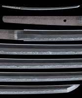 体配:Shape(Taihai): 鎬造、庵棟、中切先。 地鉄:Jigane(Hada): 小板目肌。 刃文:Temper patterns(Hamon): 丁子乱れ。 帽子:Temper patterns in the point(Bohshi): 湾れて先小丸へ返る。 登録:Registration Card: 東京都