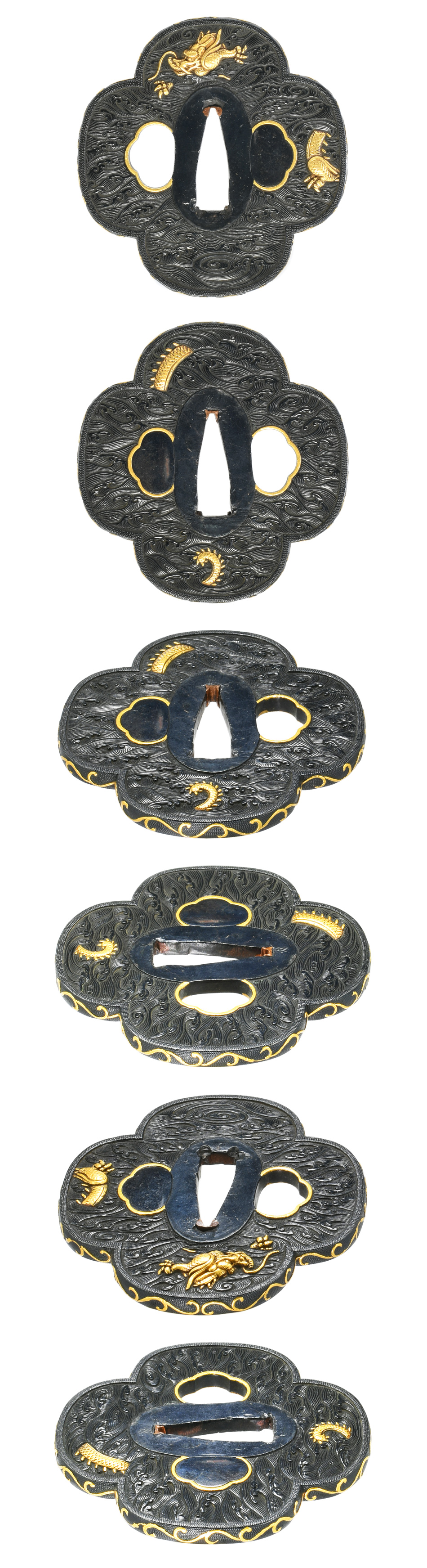 刃長:Blade length(Cutting edge): 67.8cm(二尺二寸四分) 反り:Curve(SORI): 1.7cm 説明 駿州島田派は室町中期に義助を祖として、その弟に助宗があり、新刀期に至るまで同名が数代ある。作風は義助、広助と同様に、末相州、末関、千手派の影響をうけたものがある。 |