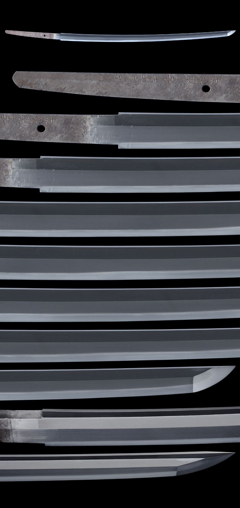 【解説】芸州住出雲大掾正光は尾張国青木元長の弟子と伝えられ、享和二年(1802)に安芸国に生まれます。家業をついで刀匠となって文政十二年五月(1829)に出雲大掾を受領します。天保十一年(1840)に広島藩に召抱えられます。本作は元治元年(1864年)の年紀があることから正光六十二歳の円熟期の作品です。 |