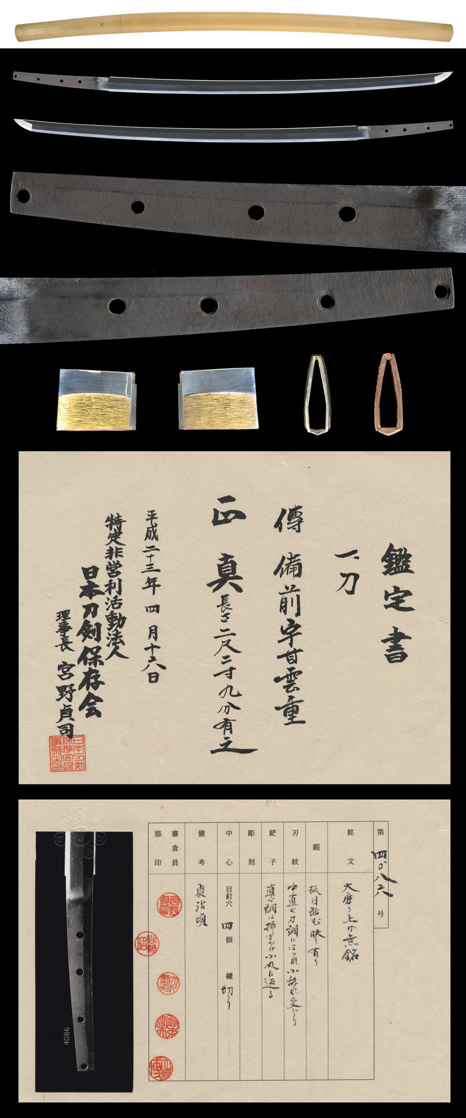 刀 伝 雲重 備前宇甘雲重 日本刀剣保存会鑑定書