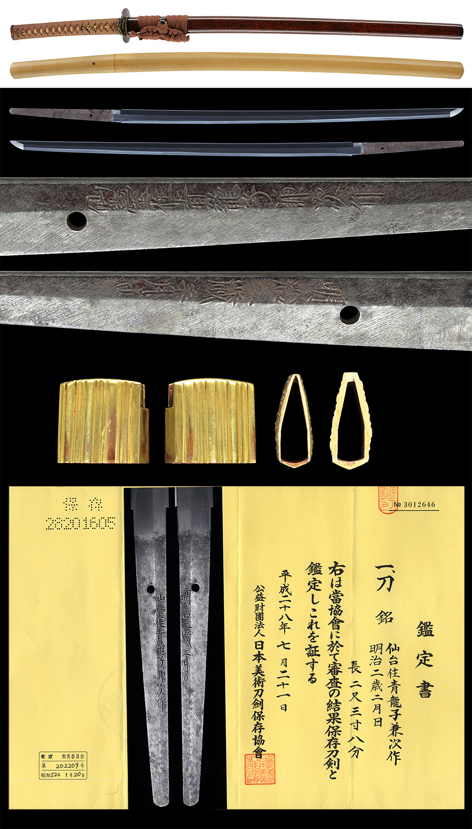 刀 仙台住青龍子兼次作 明治二歳二月日 附 変塗鞘打刀拵 保存刀剣