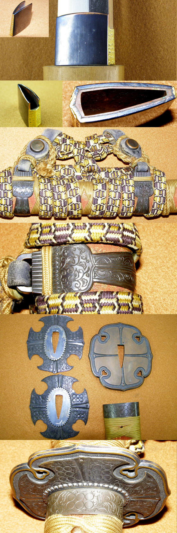 【解説】越前守信吉は、初代信濃守信吉の三男で、銘を「越前守源信吉」「入道源来信吉」「高井越前守源来信吉」などと切り、その作風は沸本位の互の目乱れを焼くが、井上真改に迫るような直刃の作もあり、晩年は大坂に移住して鍛刀している。本作は、板目肌鍛えに細かな地沸つき、刃文は大互の目乱れに湾れを交じえ、互の目が物打ちに向かって更に焼き高くなる豪快な作風である。匂深く沸よくつき、砂流ししきりに掛り、足入り、匂口明るく冴え、帽子尖りこころに先小丸に返る。本工の高度な技量を余すところ無く発揮した優品の一振りです。物打付近の鎬地にある曇りは研師が消しました。拵も刀身に相応しい糸巻太刀拵が添えられています。金具は全て四分一と赤銅の一作物で、毛彫りも丁寧で一級の出来です。紋金はじめ鍔、小尻、縁頭には六連銭が彫られています。真田家に由来するものか?真田家は信濃海野氏の流れをくむ名族で、武田氏に臣従。数々の軍功から本領真田郷と六連銭の旗印を与えられました。信玄が不動明王を信仰していたことは有名な話ですが、本刀の目貫にも独鈷剣に竜が巻いている作が、添えられており、目貫自体も不動明王を示すなど。なるほど真田家に伝わる作なのかと考えている私でした。鞘の朱色も落ち着いて好ましく、内外ともに揃った品で見逃せない優品です。 全てのVISAカード、Masterカード、NICOSカード、UFJカード、DCカード、 |