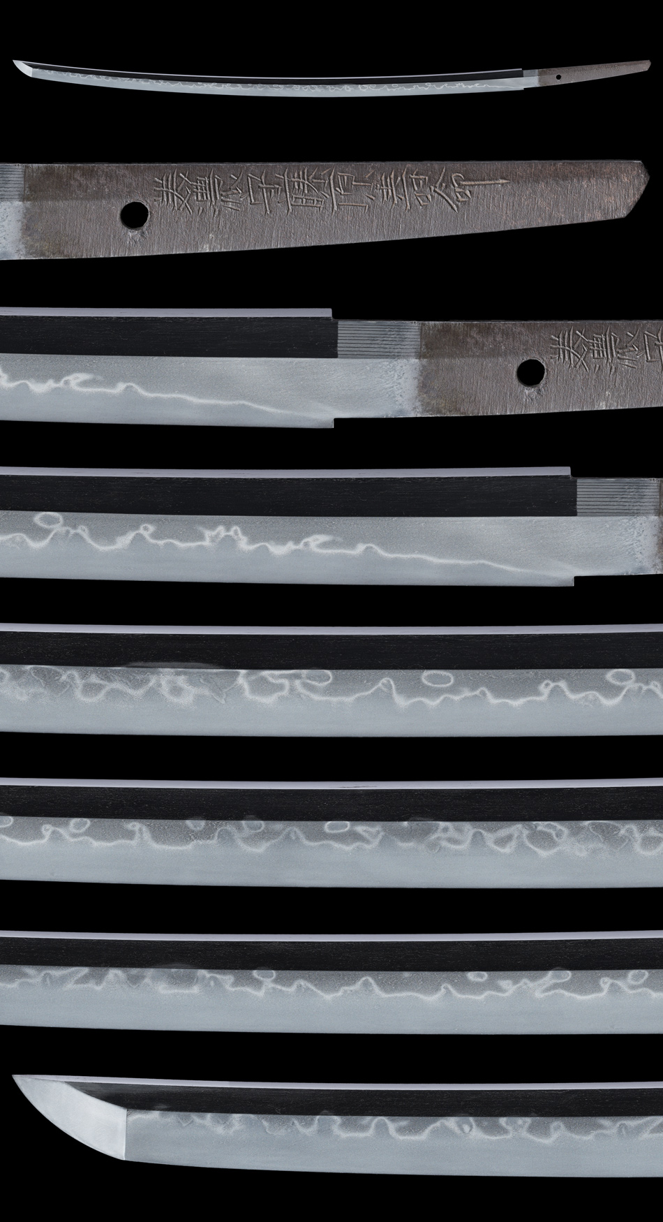 刃長:Blade length(Cutting edge): 73.4cm(二尺四寸二分) 反り:Curve(SORI): 1.9cm |