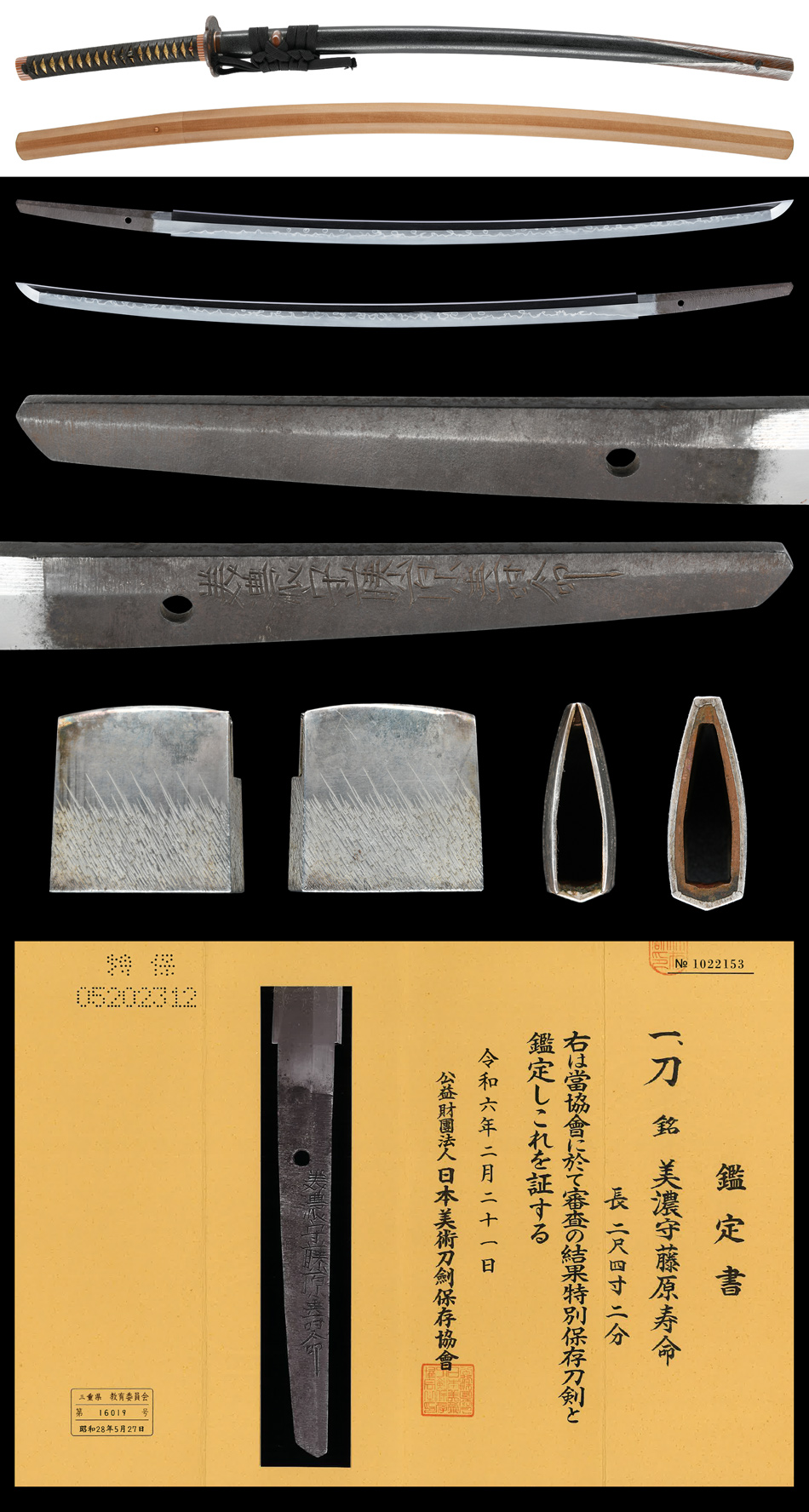 刀 美濃守藤原寿命 附 黒石目地塗鞘打刀拵 特別保存刀剣鑑定書