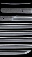 刃長:Blade length(Cutting edge): 71.0cm(二尺三寸四分) 反り:Curve(SORI): 1.5cm |