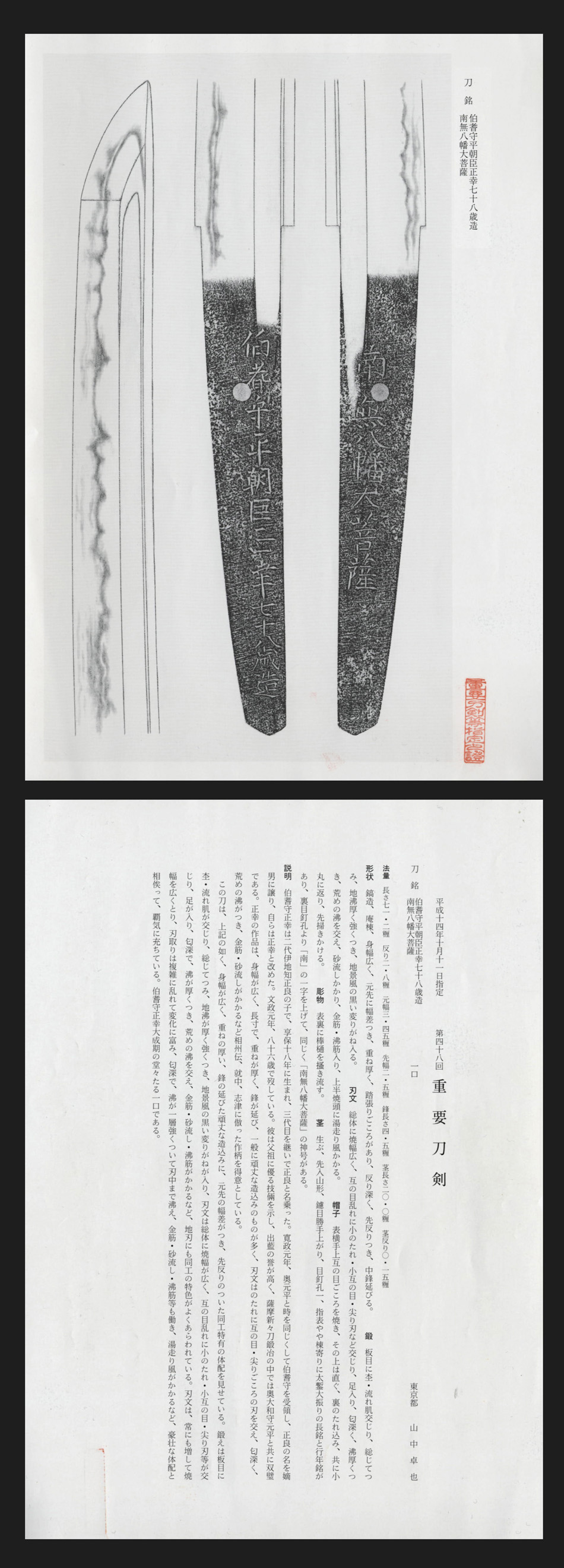 刀 銘 伯耆守平朝臣正幸七十八歳造 南無八幡大菩薩 第48回重要刀剣指定 大成期の堂々たる名誉の一振
