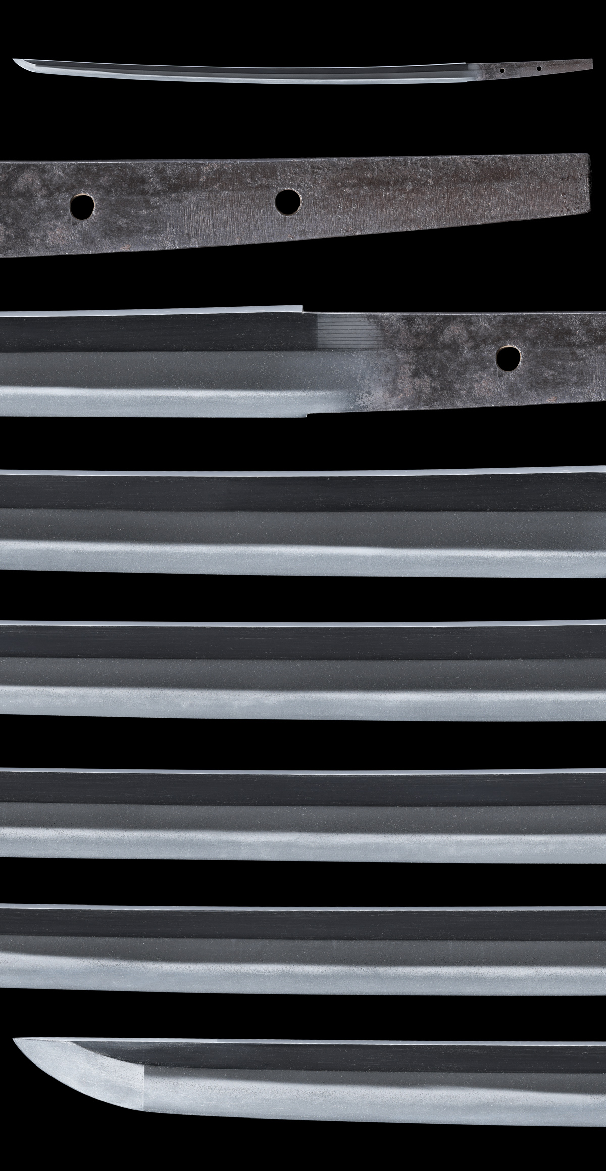 刃長:Blade length(Cutting edge): 71.0cm(二尺三寸四分) 反り:Curve(SORI): 1.0cm |