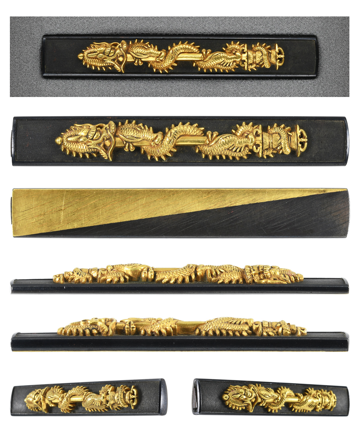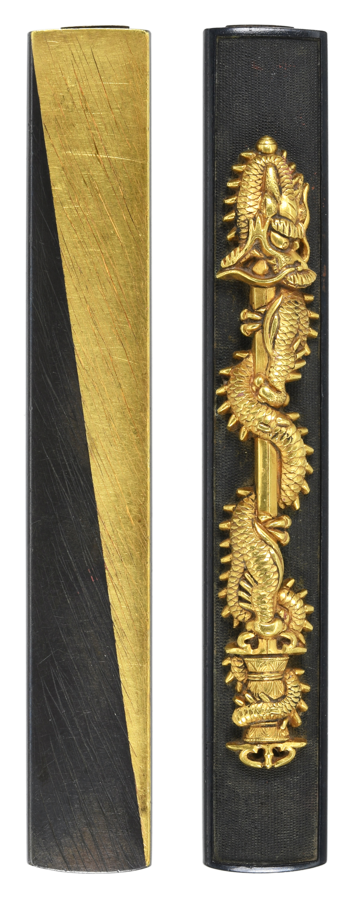 倶利伽羅龍図小柄 赤銅魚子地 金紋 裏削継金 |