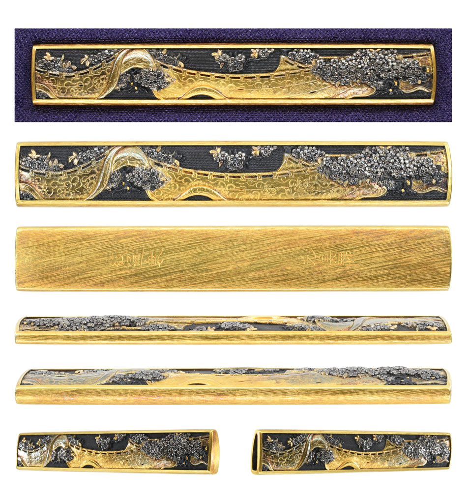 小柄 銘 紋通乗 光美 (花押) 観桜図小柄 特別保存刀装具鑑定書