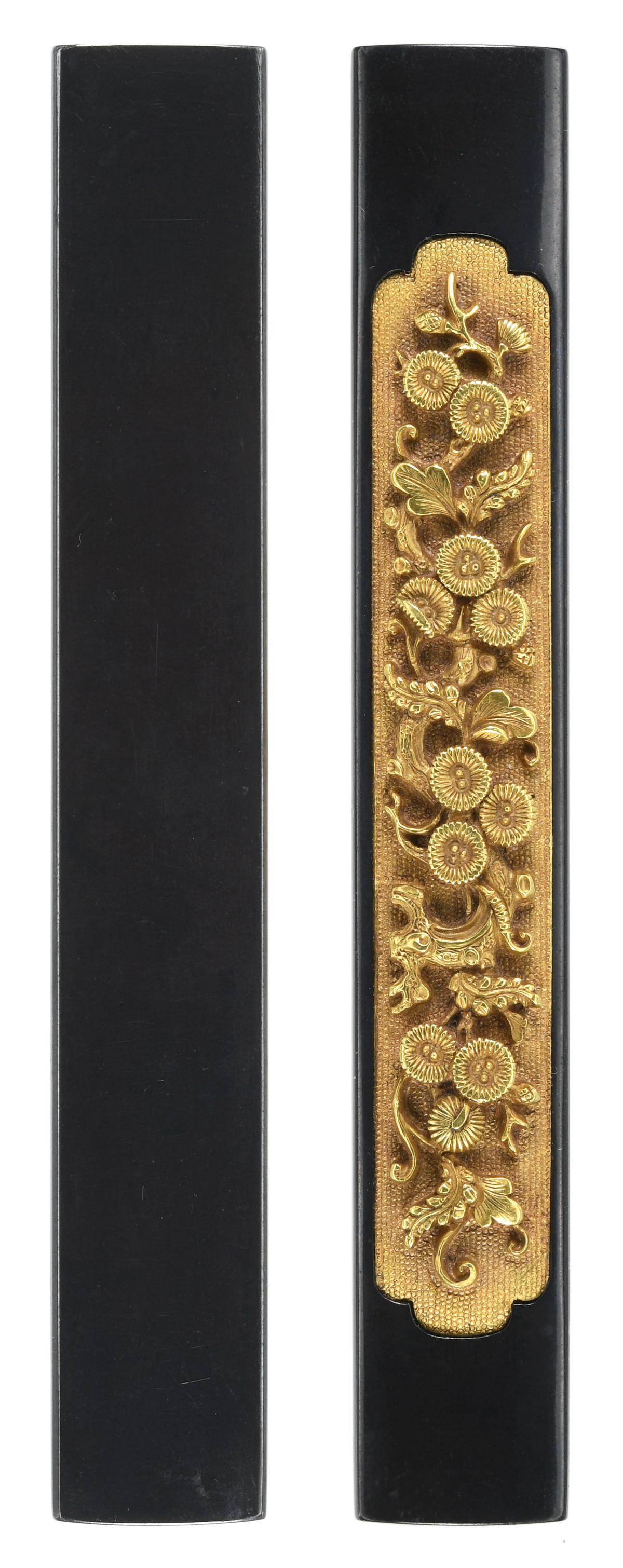 松に藤波図小柄 金魚子地 高彫据文 裏哺赤銅 |
