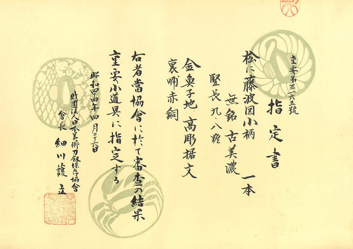 鑑定書:Paper(Certificate): 第18回重要小道具認定書
