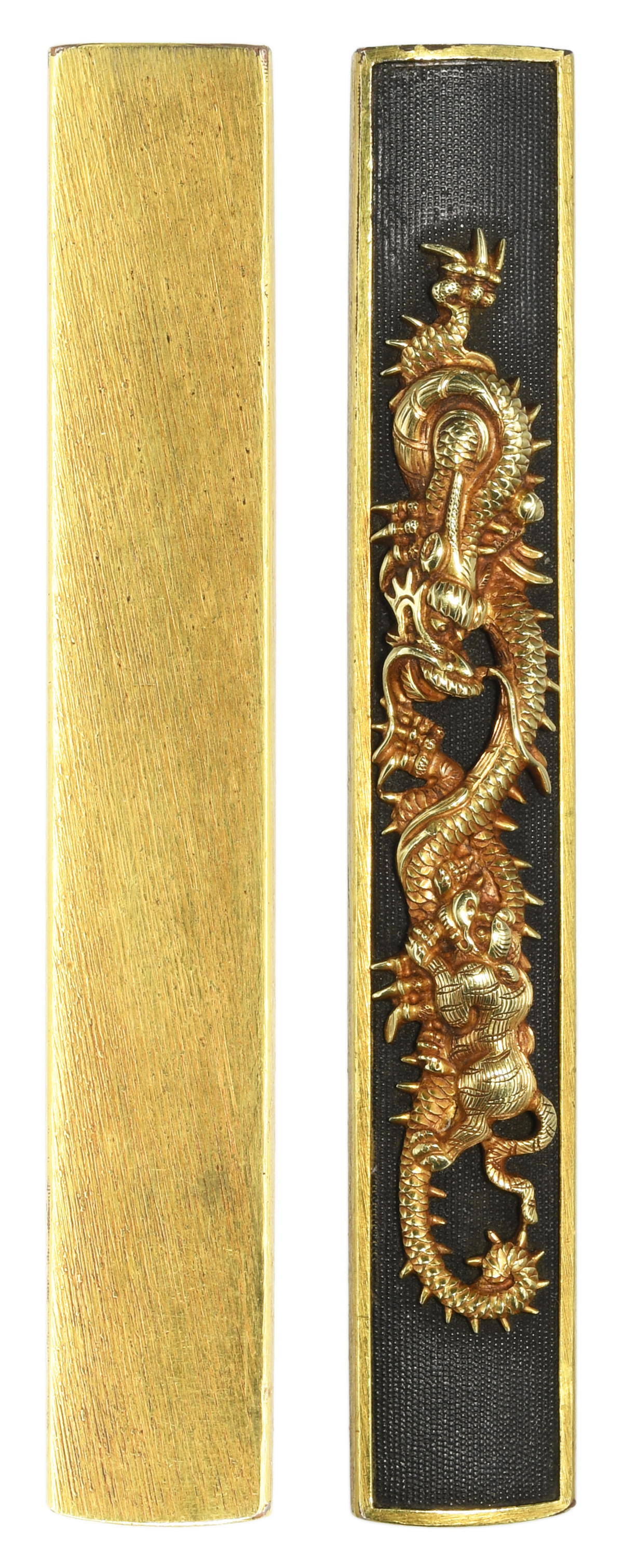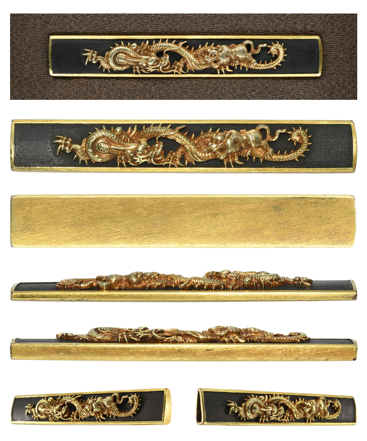 龍虎図小柄 赤銅魚子地 金紋 裏哺金 |