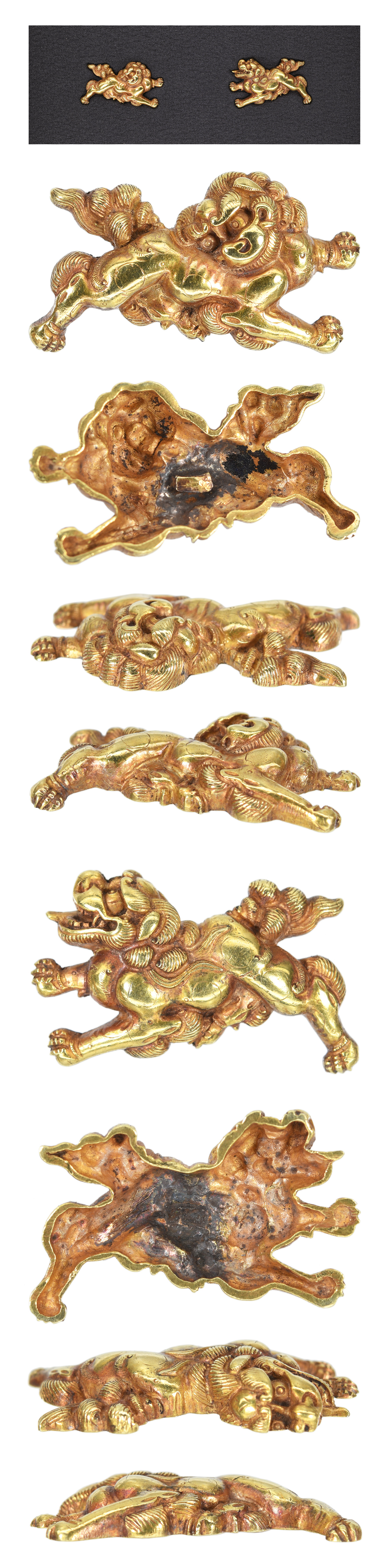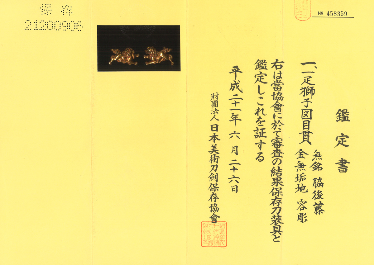 目貫 無銘 脇後藤 一疋獅子図目貫 保存刀装具鑑定書