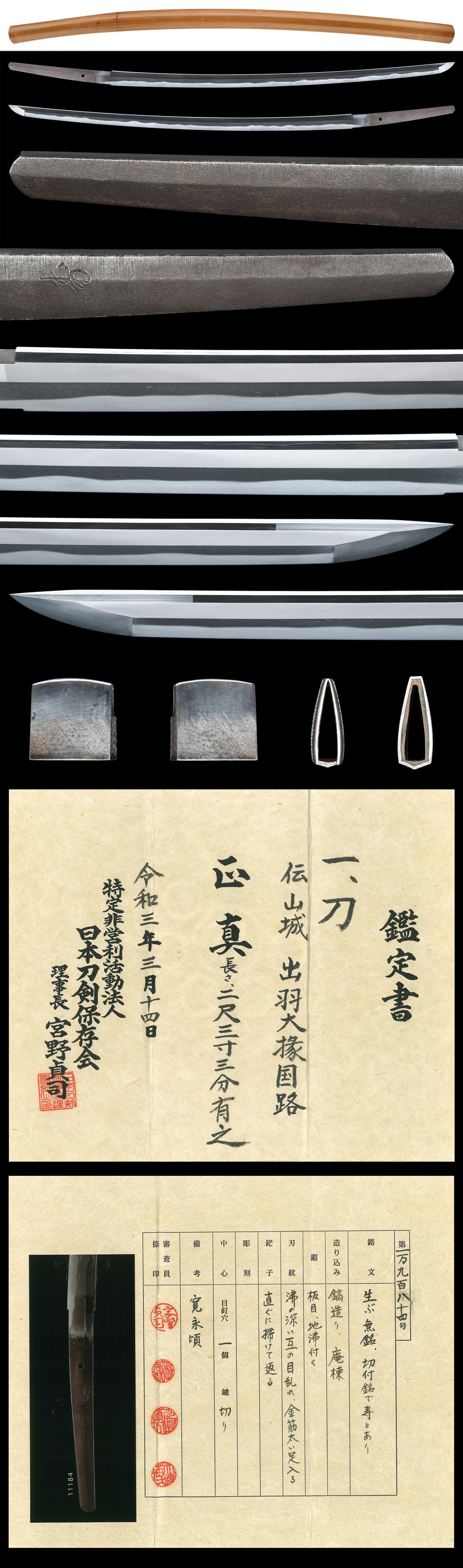 刀 寿(伝 出羽大掾国路) 日本刀剣保存会鑑定書