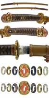 奥州住大聖司孫太郎正光は、宮城県生まれで名前は菅野正光。昭和の初めに陸軍刀匠として活躍されていた方です。本品の陸軍刀拵は、近年に部品を寄せ集めて合わせられたものでは無く、戦時中のままの物です。今では少なくなってきた陸軍刀の優品の一口です。