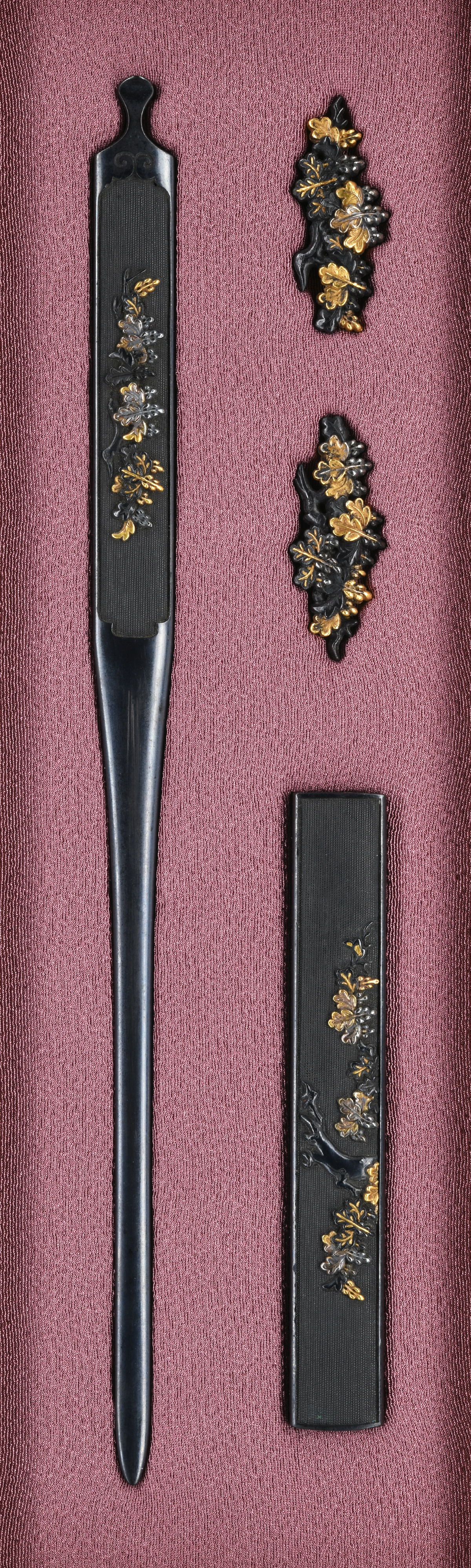 桐樹図三所 【笄】 縦:Length:21.3cm 横:Width:1.24cm 厚:Thickness:0.46cm