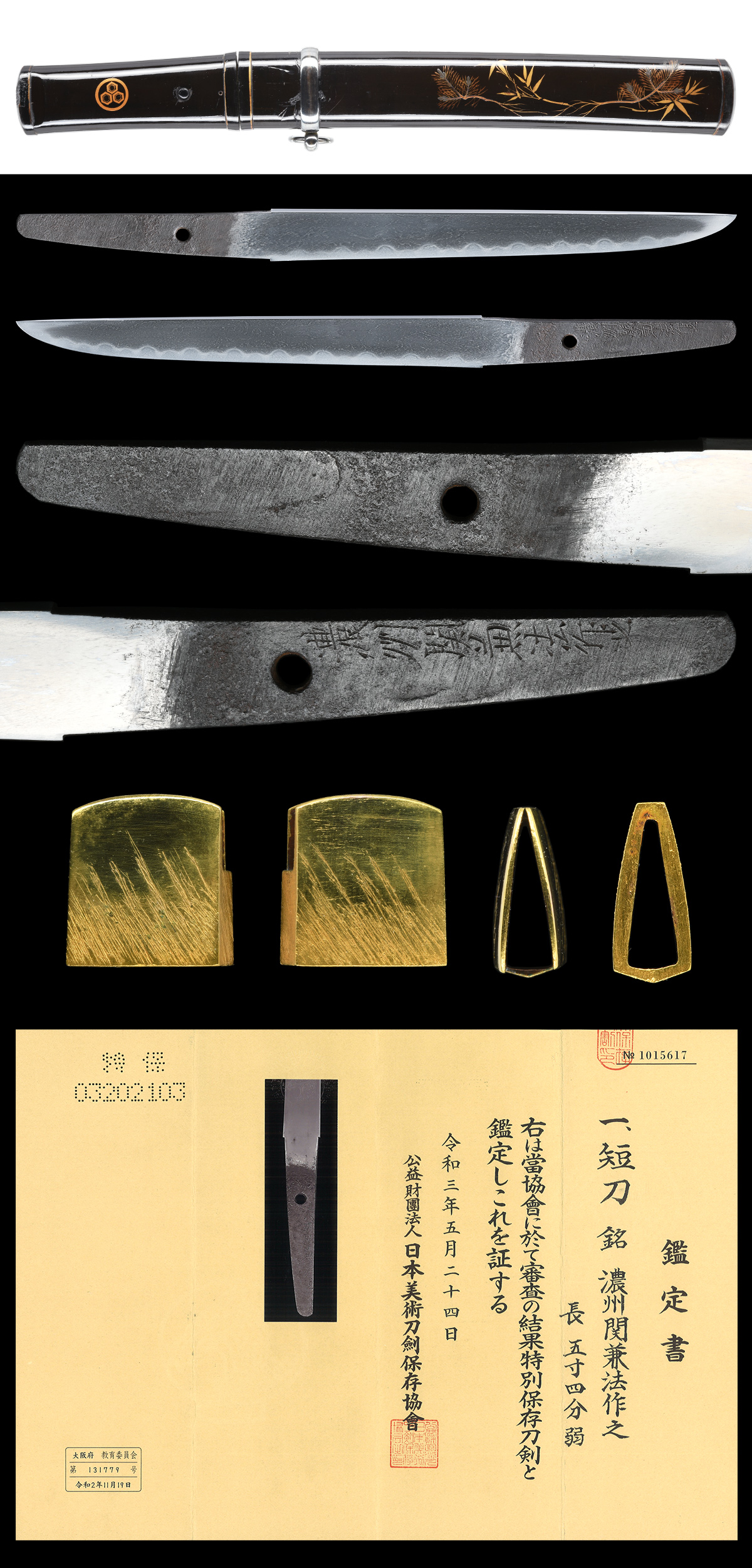 短刀 濃州関兼法作之 附 黒蝋色塗蒔絵鞘合口短刀拵入 特別保存刀剣鑑定書