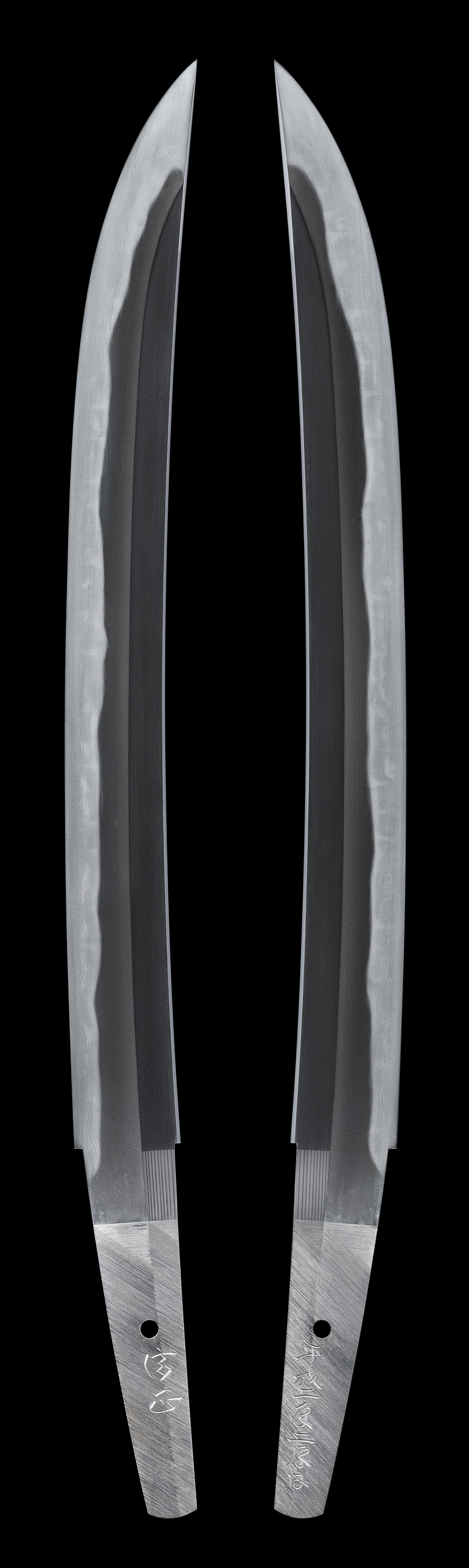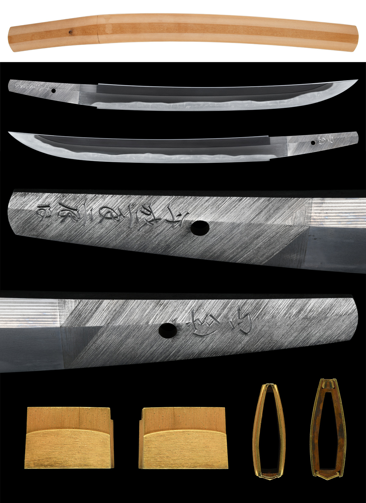 宮城県の現代刀工、早坂信正氏作。柾目肌精緻で鉄潤い、働き盛んな刃が焼かれた同工の優品です。