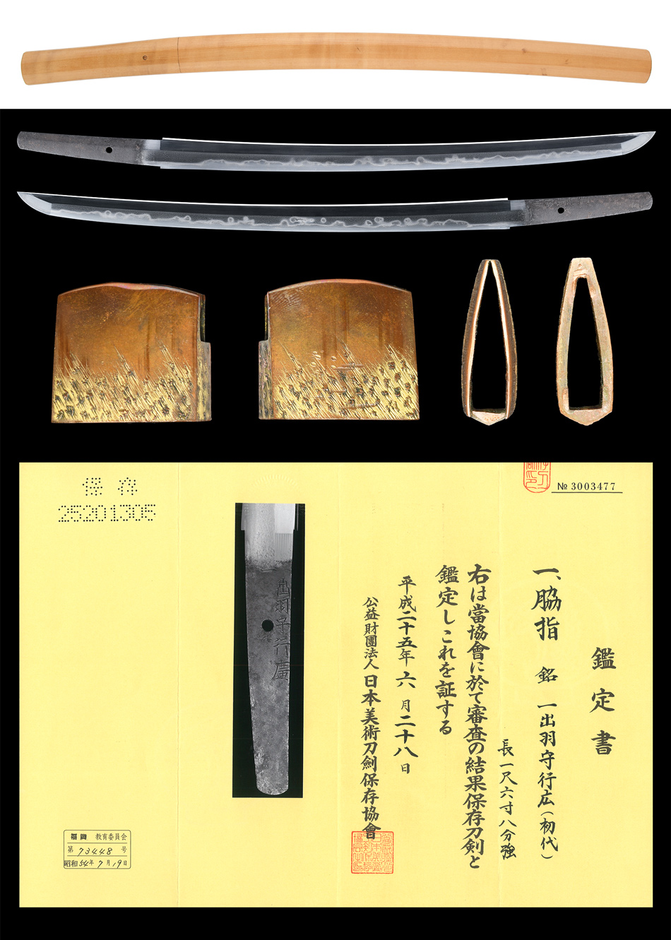 脇差 一出羽守行広(初代) 保存刀剣鑑定書