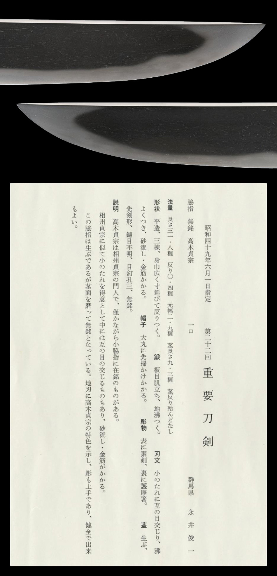Tantou [Takagi Sadamune]NBTHK Jyuyou-Touken