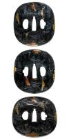 川原図 無角形 鉄槌目地 毛彫 真鍮・銅象嵌 両櫃孔 |