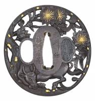 Tsuba [Insyu-ju Suruga Takaoki Ouka-bagyu-zu-sukashi Daisyo-Tsuba][N.B.T.H.K] Tokubetsu Hozon Tousogu