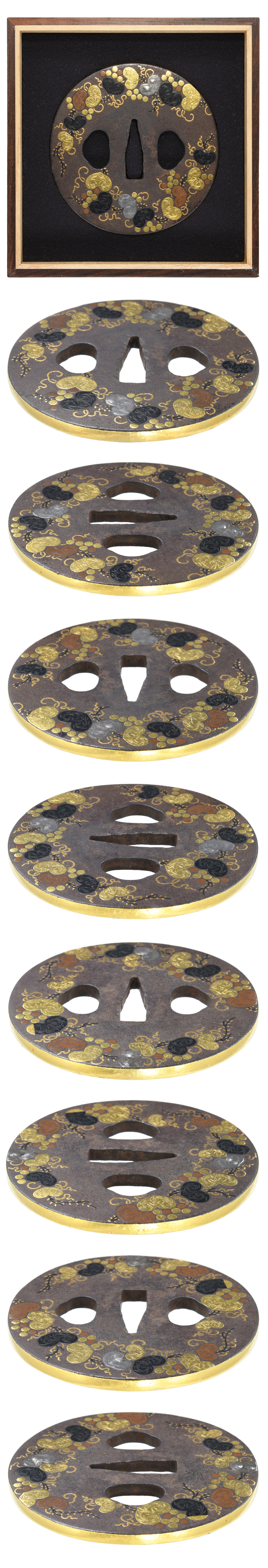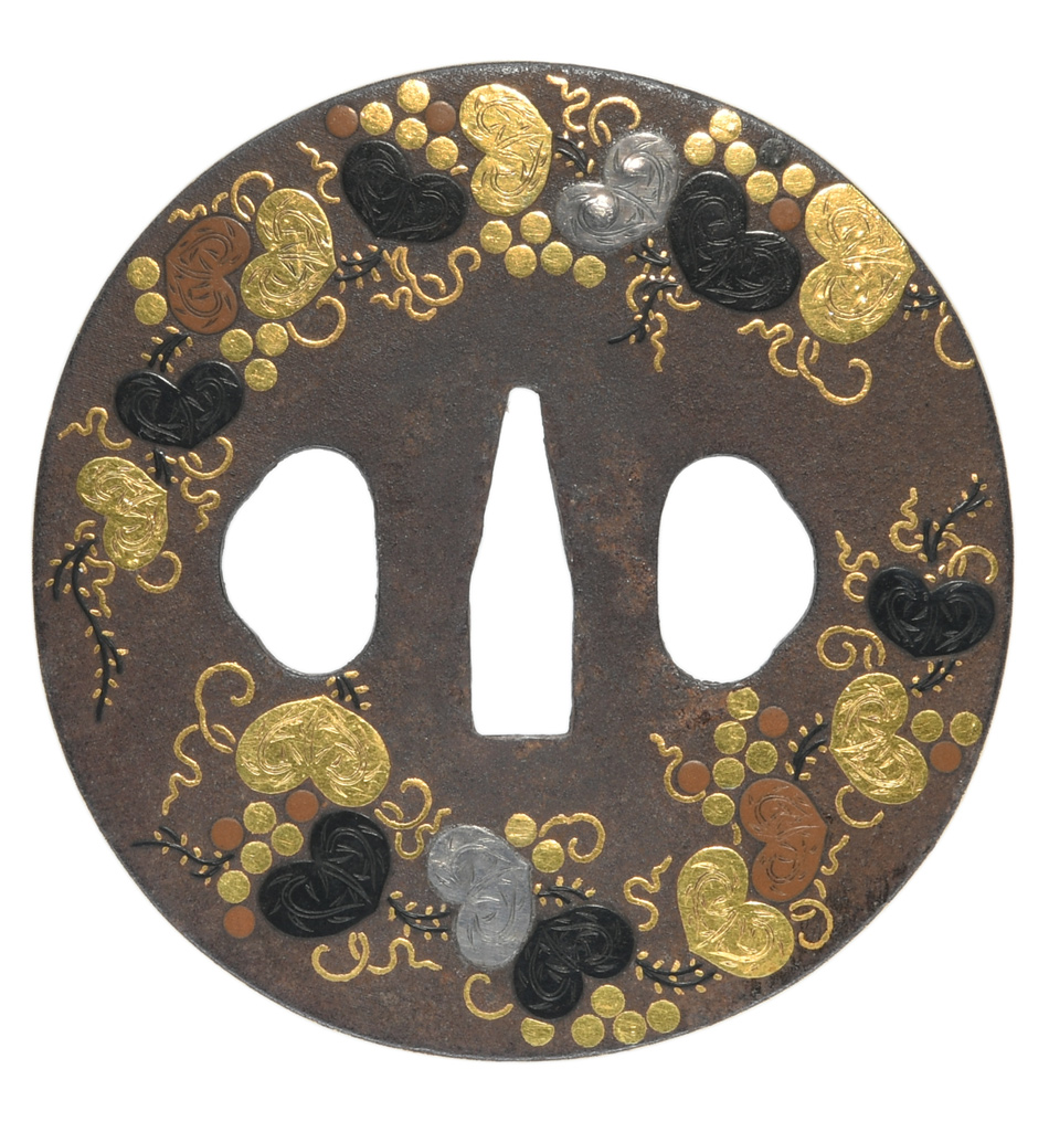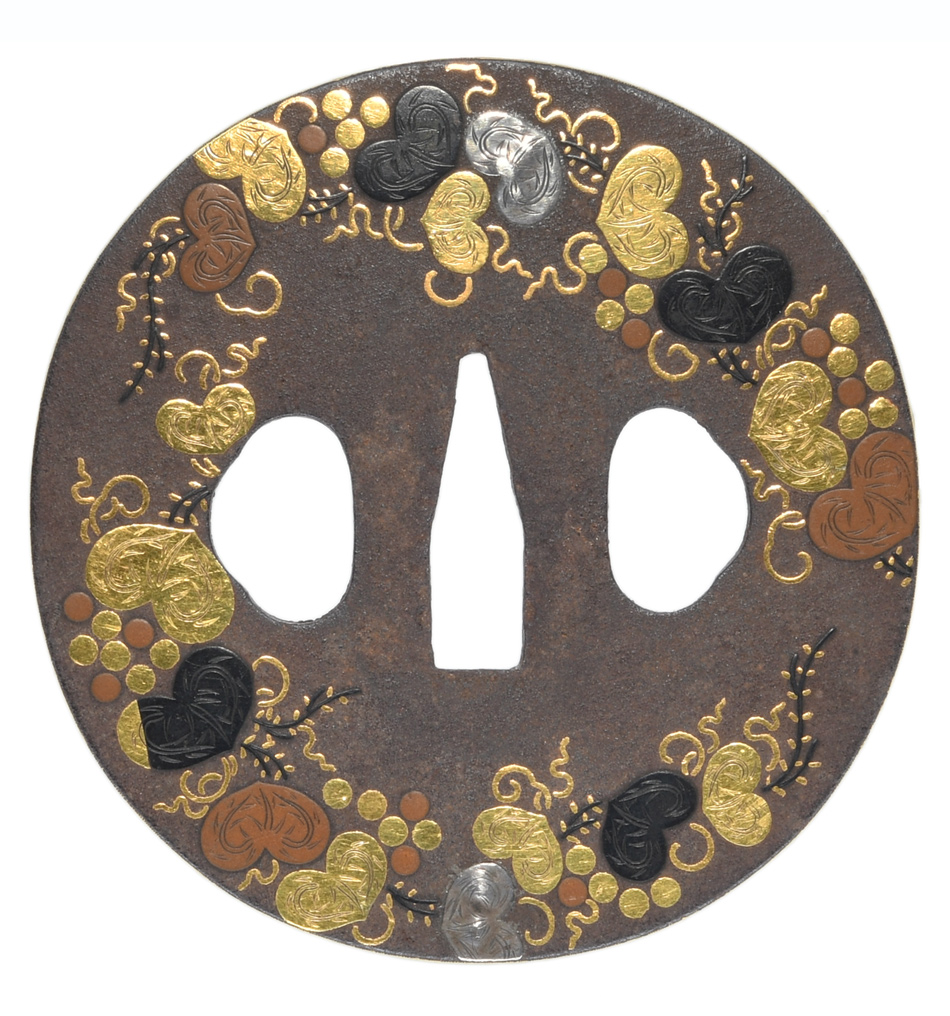 葡萄図鍔 竪丸形 鉄地 象嵌 角耳 |