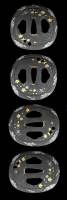 鉄磨地 竪丸形 鋤下彫 金銀布目象嵌 両櫃孔 |