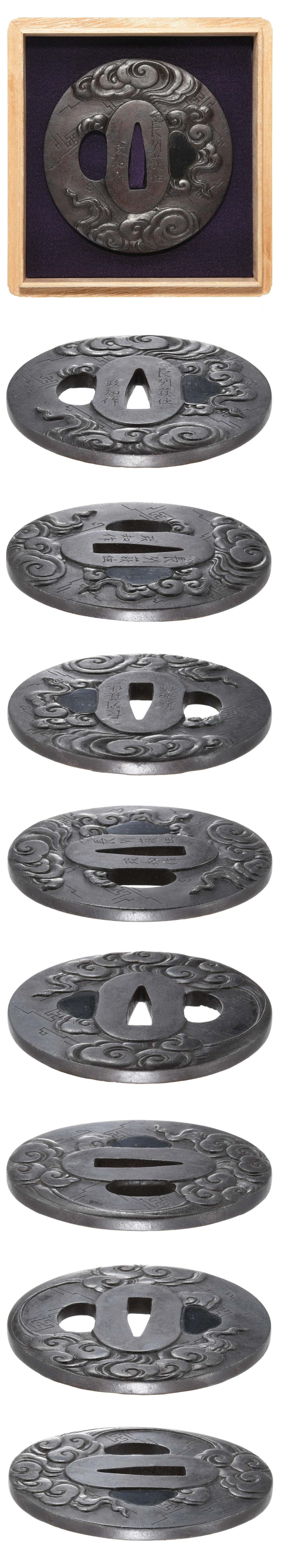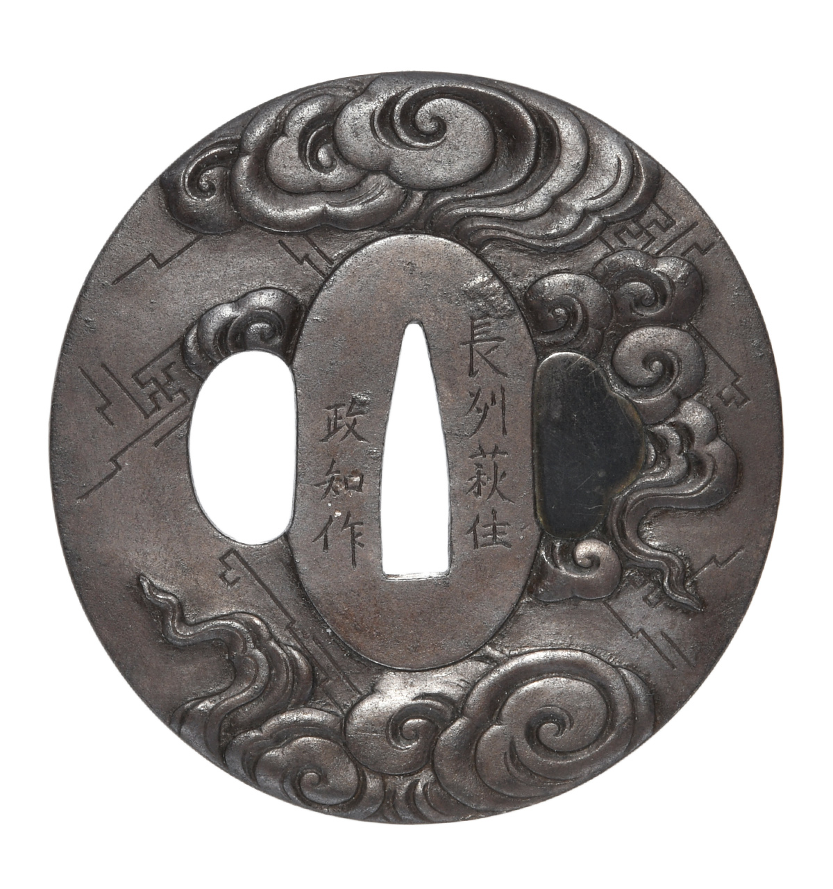 鍔 銘 長州萩住政知作 雷雲図鍔 特別保存刀装具鑑定書