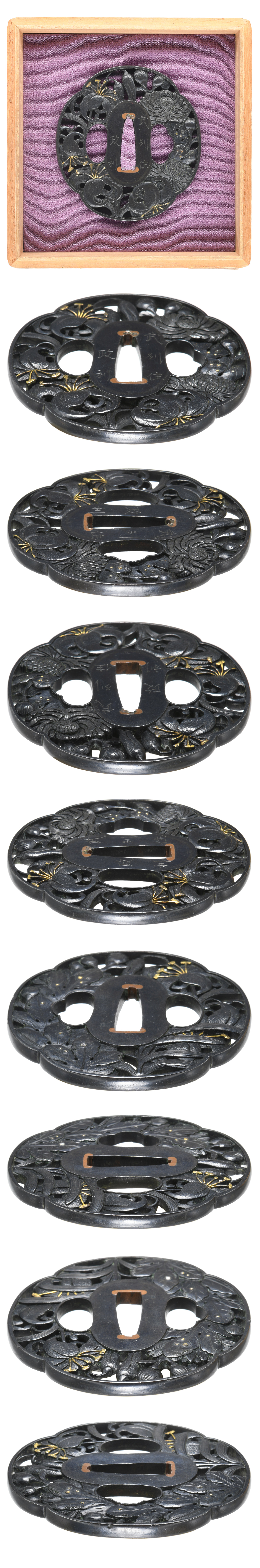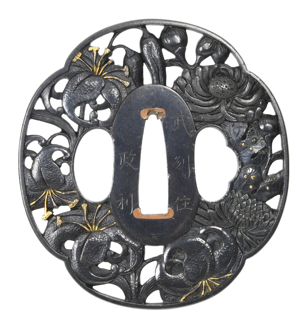 鍔 銘 武州住政利 百合菊花図鍔 特別保存刀装具鑑定書
