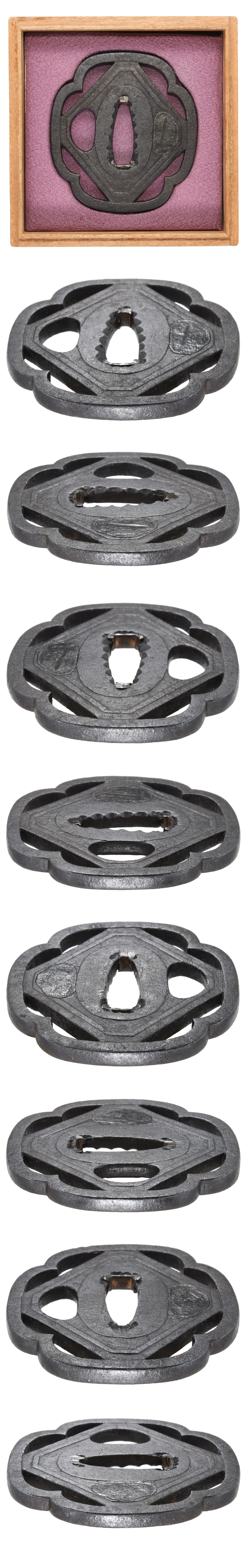 鍔 無銘 後代柳生 隅切角文透鍔 保存刀装具鑑定書