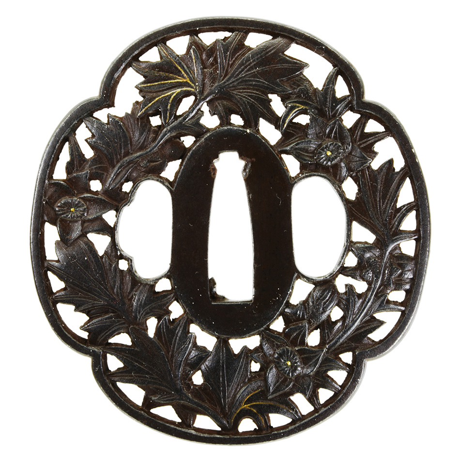 鉄線花図鍔 木瓜形 鉄地 両櫃孔