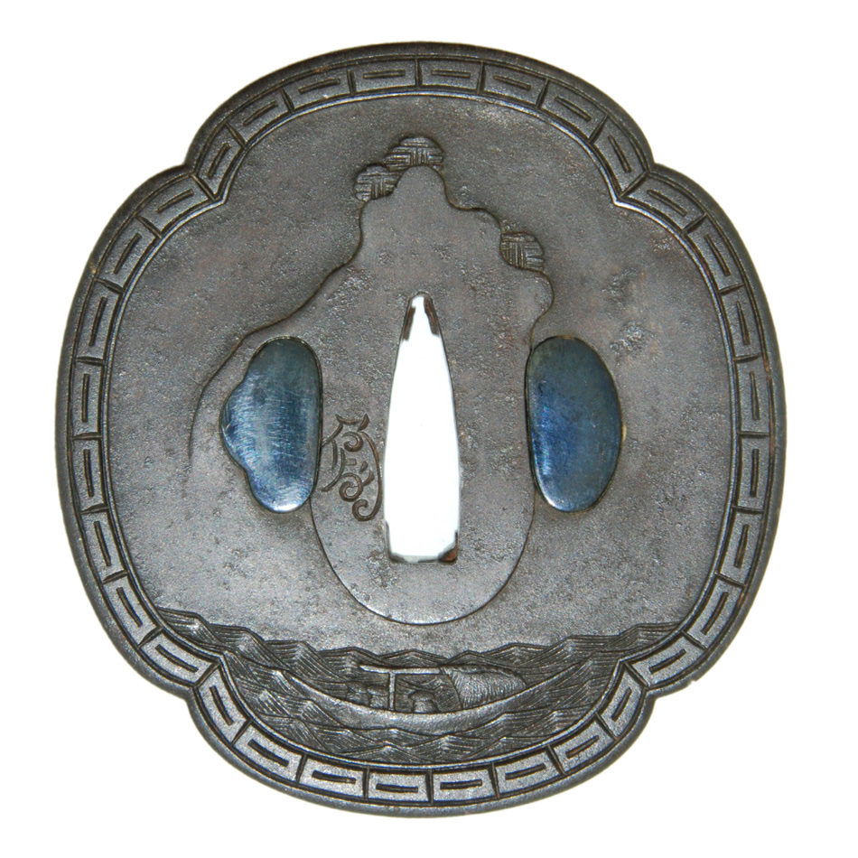 鍔 銘 八道友之造 帆船図鍔 保存刀装具鑑定書