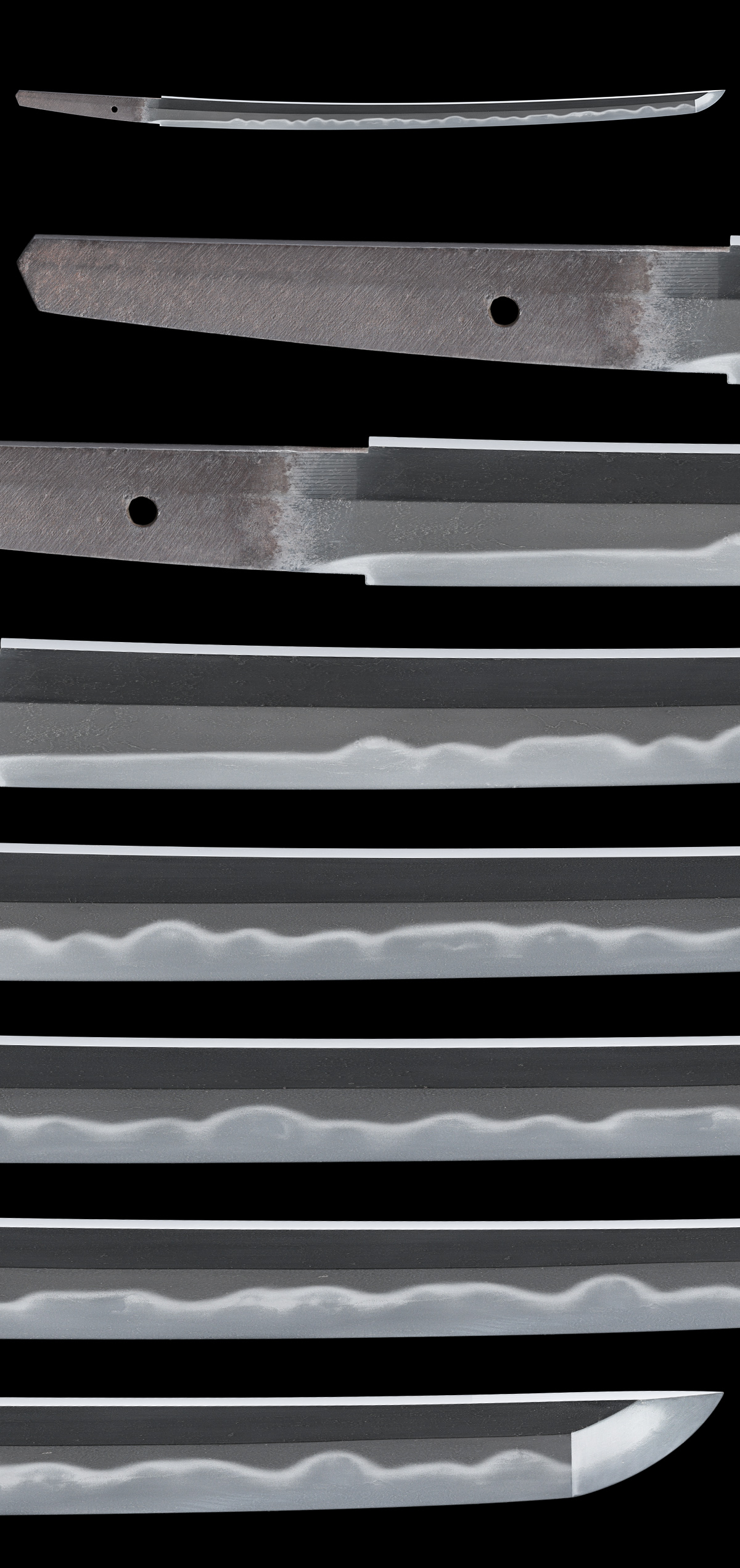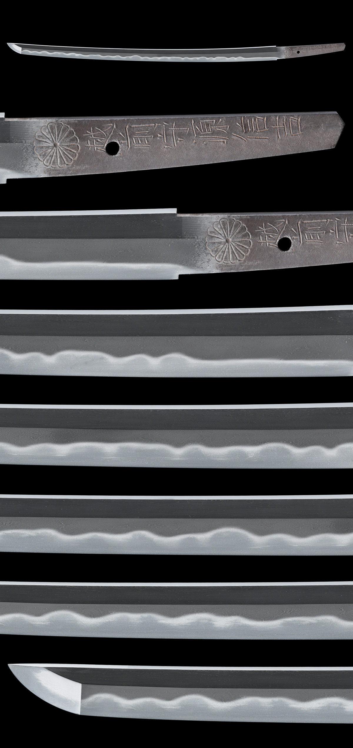 刃長:Blade length(Cutting edge): 60.0cm(一尺九寸八分) 反り:Curve(SORI): 1.1cm |