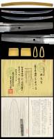 刃長:Blade length(Cutting edge): 46.4cm(一尺五寸三分一厘) 反り:Curve(SORI): 1.2cm |