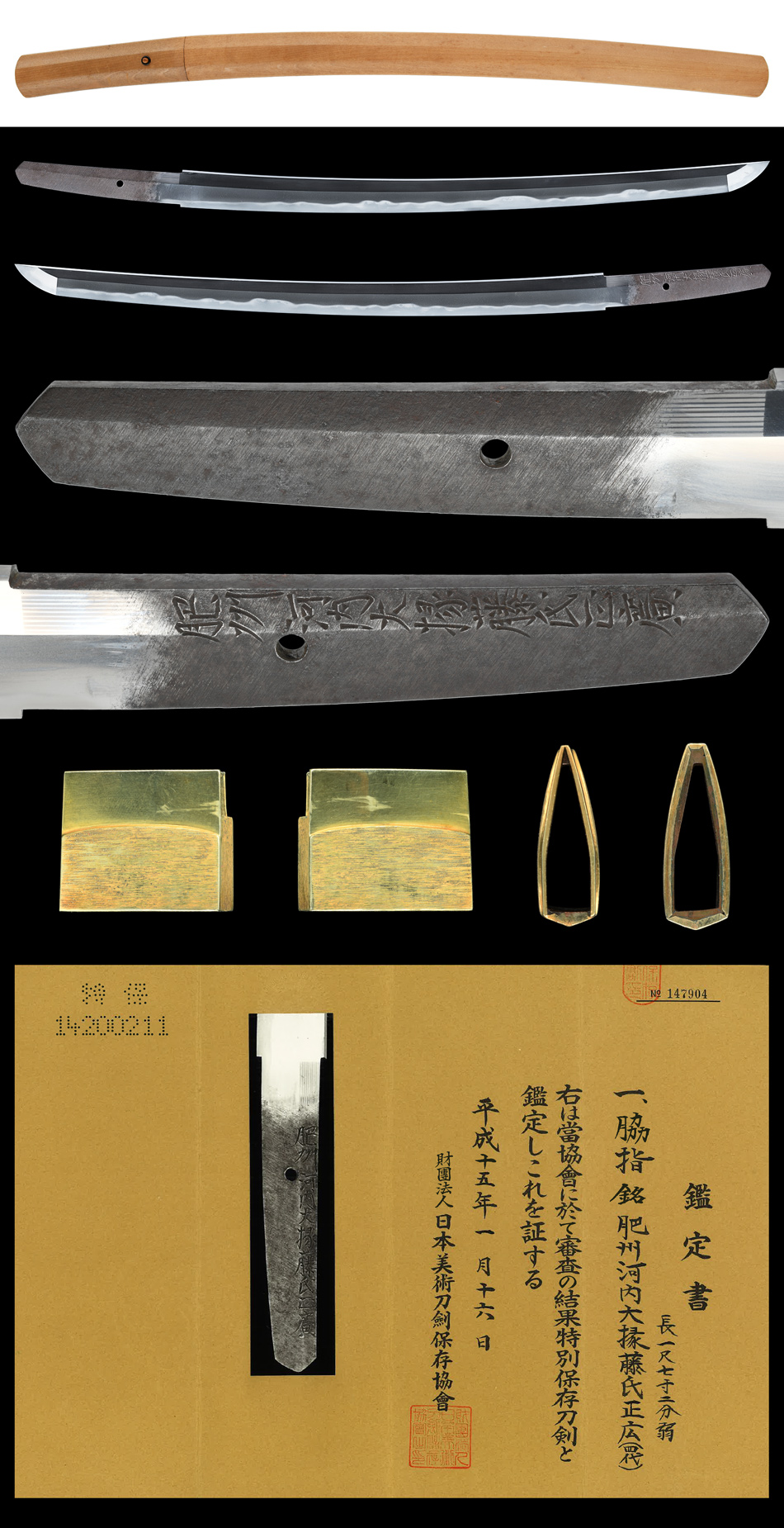 脇差 肥州河内大掾藤氏正広(四代) 特別保存刀剣鑑定書