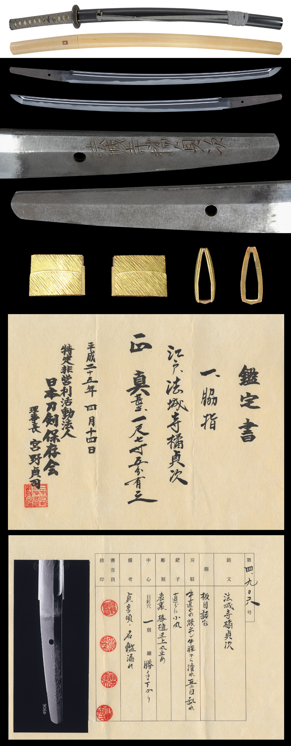 脇差・法城寺橘貞次 業物 日本刀剣保存会鑑定書