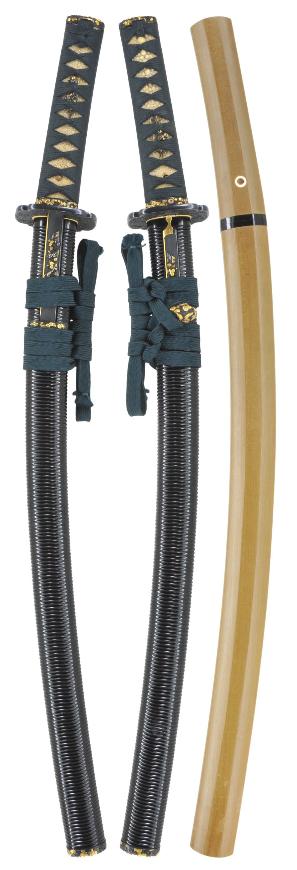 【解説】備州長船祐定、永正六年八月日の年紀が入った御刀です。室町時代後期の備前長船刀工を総称して末備前と称します。長船鍛冶の中でも祐定の一派は特に名を高めて後代まで長きに渡り繁栄しました。銘鑑によれば銘文に俗名を冠している永正の与三左衛門尉、源兵衛尉、彦兵衛尉らを筆頭として二十数人挙げられています。末備前の作風は多岐にわたり腰の開いた互の目乱れから直刃に至るまで様々であり稀に皆焼の作も見られます。 |