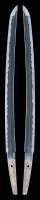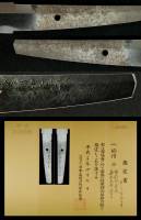 刃長:Blade length(Cutting edge): 45.5cm(一尺五寸〇分) 反り:Curve(SORI): 0.9cm 体配:Shape(Taihai): 中切先、鎬造、庵棟、姿健全。 |