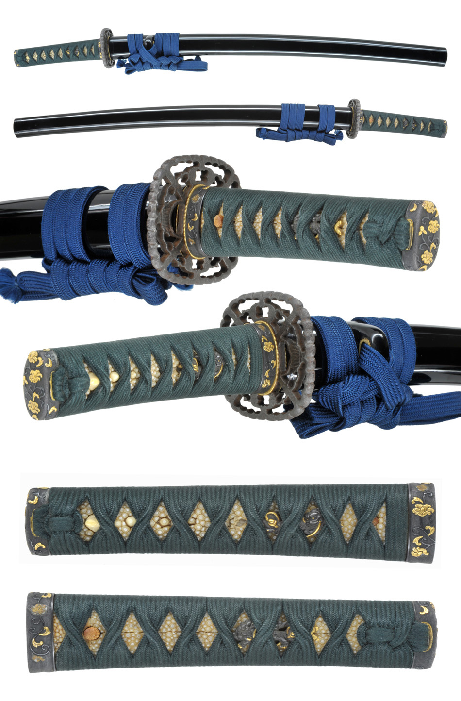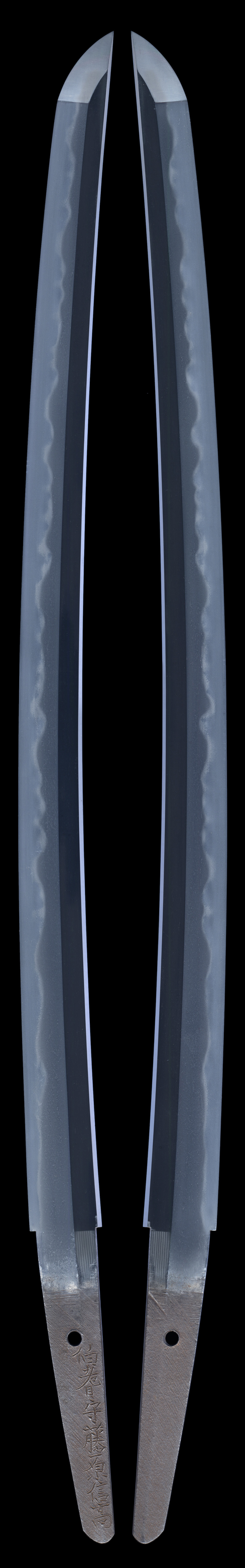 【解説】伯耆守信高、二代の子で、初銘は信照。伯耆守藤原信高の作品です。俗名は河村伯耆。寛文五年に伯耆守を受領、寛永四年に没しています刻銘、伯耆守藤原信高。父二代信高との合作も多く、ゆえに合作銘入る御刀も残っています。信高は尾張新刀を代表する刀工です。信高家は慶長のはじめに初代が美濃から尾張清洲城下をへて、名古屋城が完成した慶長十五年頃に名古屋に移住します。初代信高より匠銘と技術は受け継がれ、その後も代々尾張徳川家の藩工として栄え六代まで続きます。一派は初代から五代までが「伯耆守」を受領している尾張刀匠の名門であります。 |