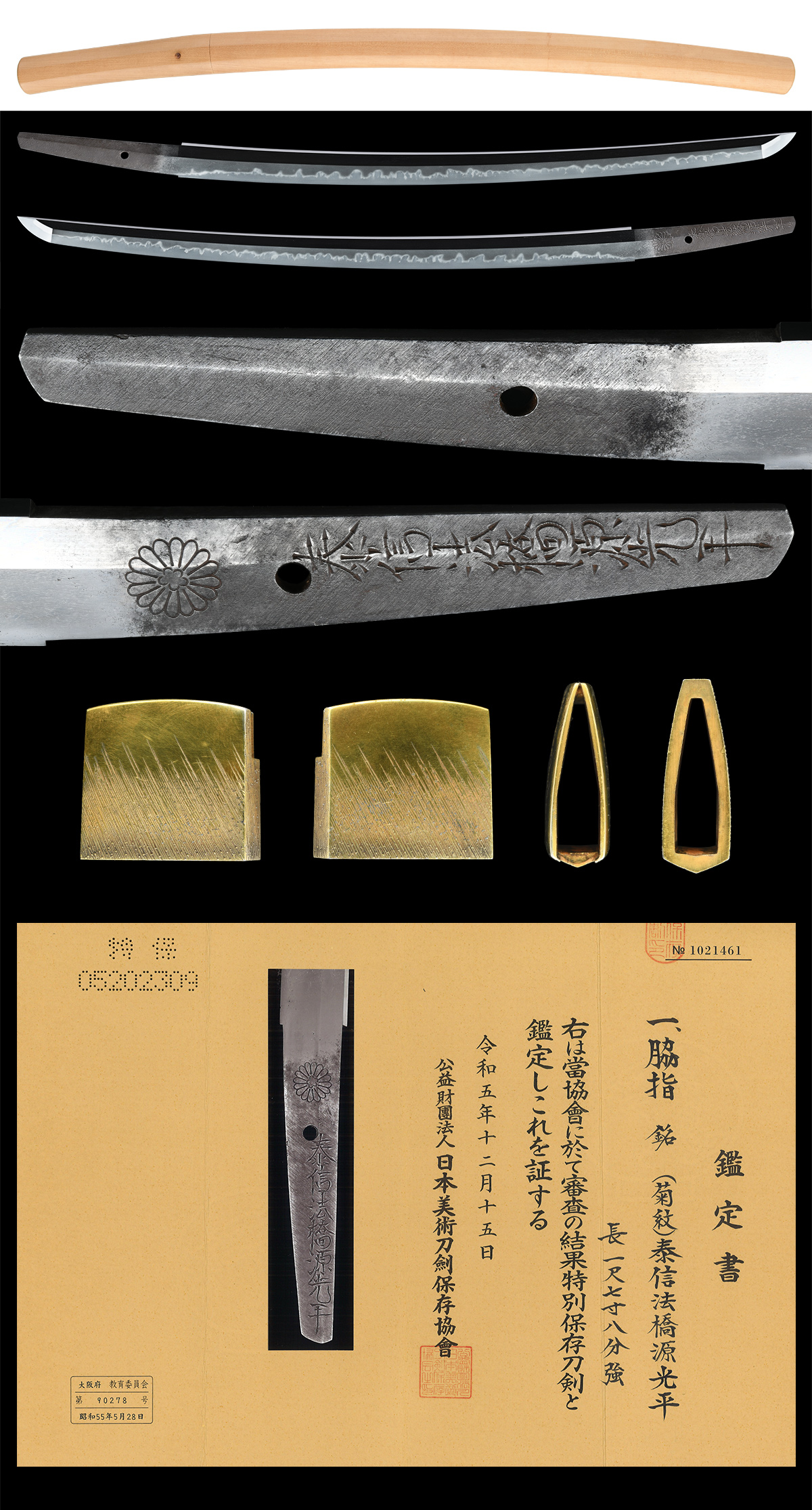 脇差 (菊紋)泰信法橋源光平(日置光平) 特別保存刀剣鑑定書 新刀上作 良業物