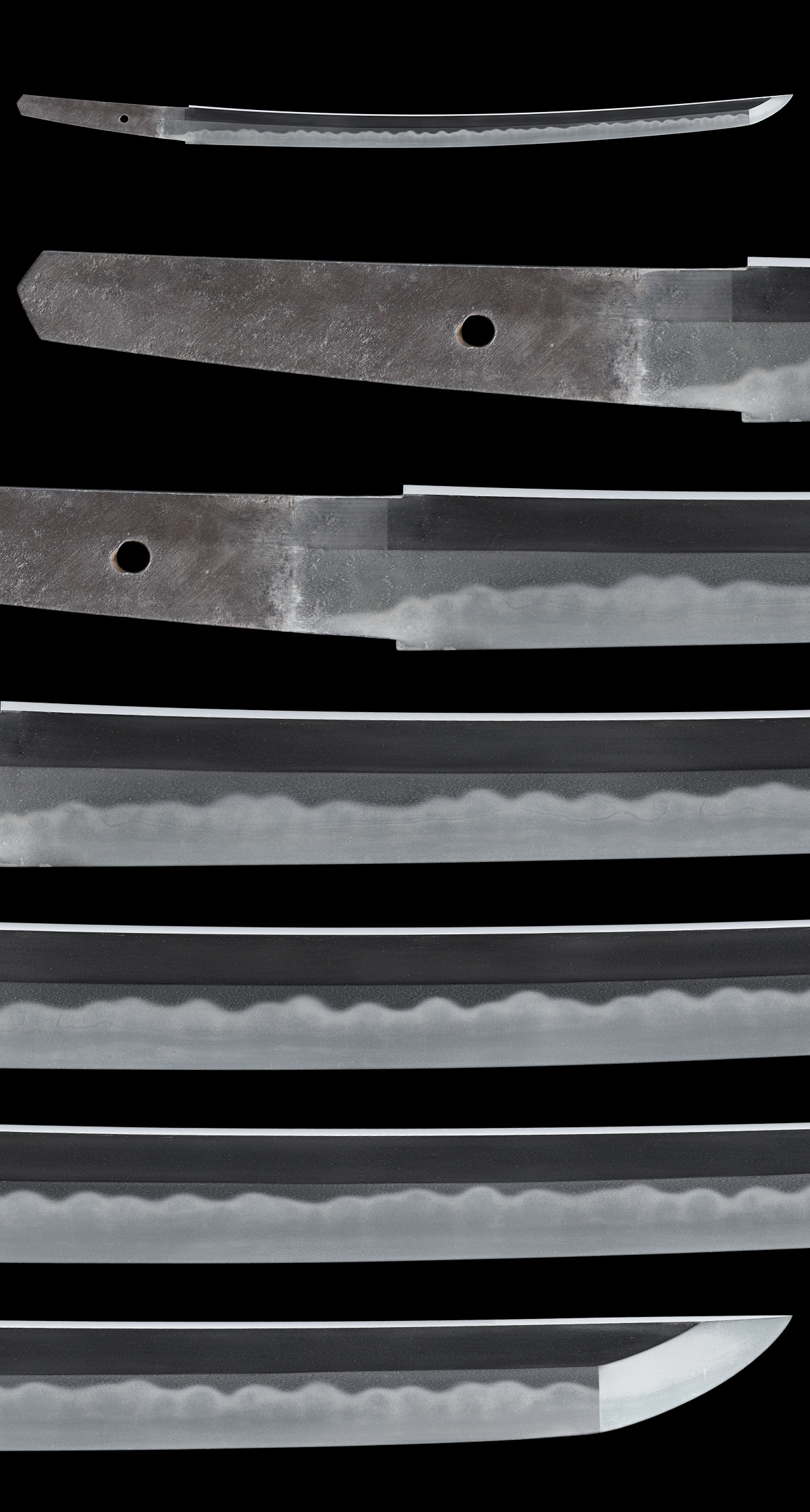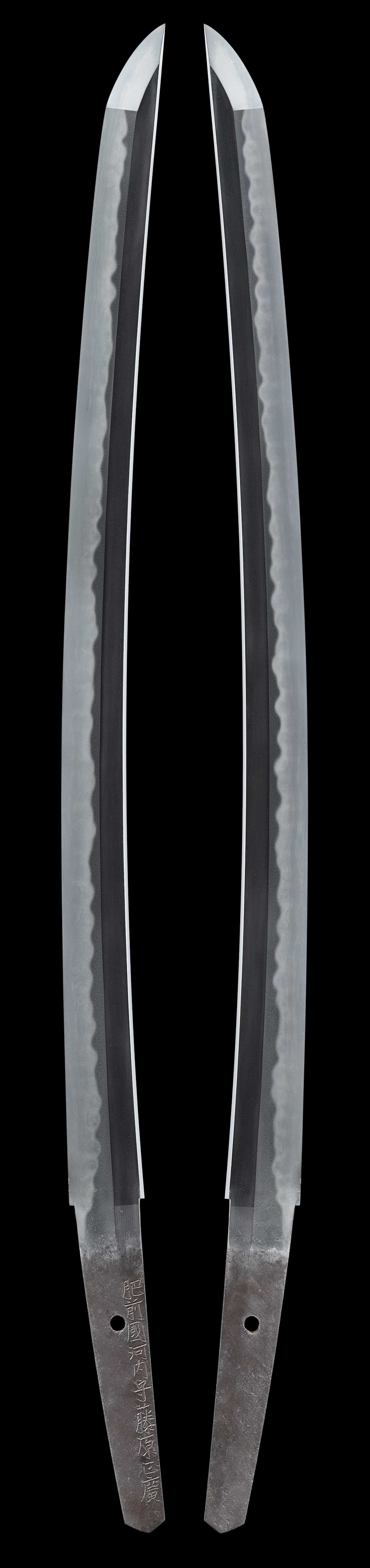 本作は肥前忠吉正系と並び、抜群の力量を誇る正廣家二代 河内守正廣の御刀です。健全な姿、地肌破綻なく、中互の目と小湾れ刃文に丁子足や葉、砂流し・金筋が掛かるなどして盛んに働き、大変見応えのある名品であります。
