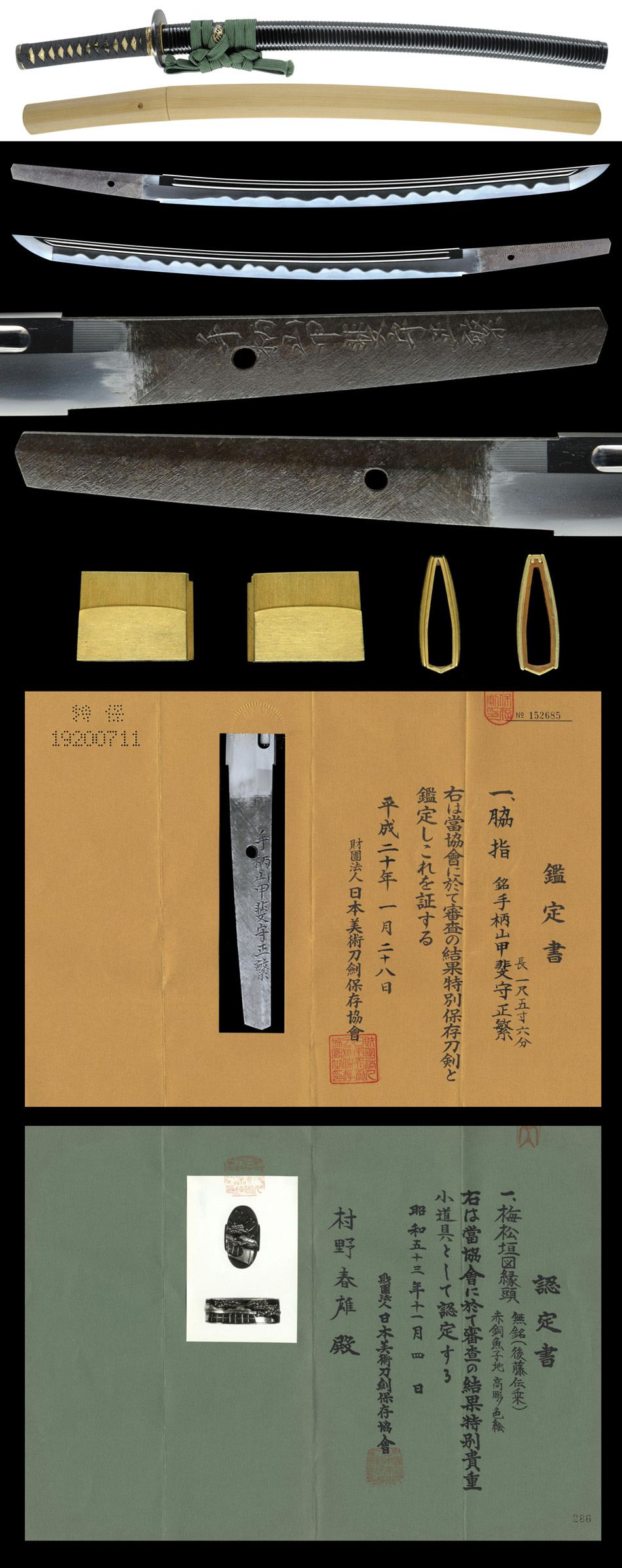 脇差 手柄山甲斐守正繁 附 刻鞘脇差拵 上野国立博物館特別貴重刀剣鑑定書