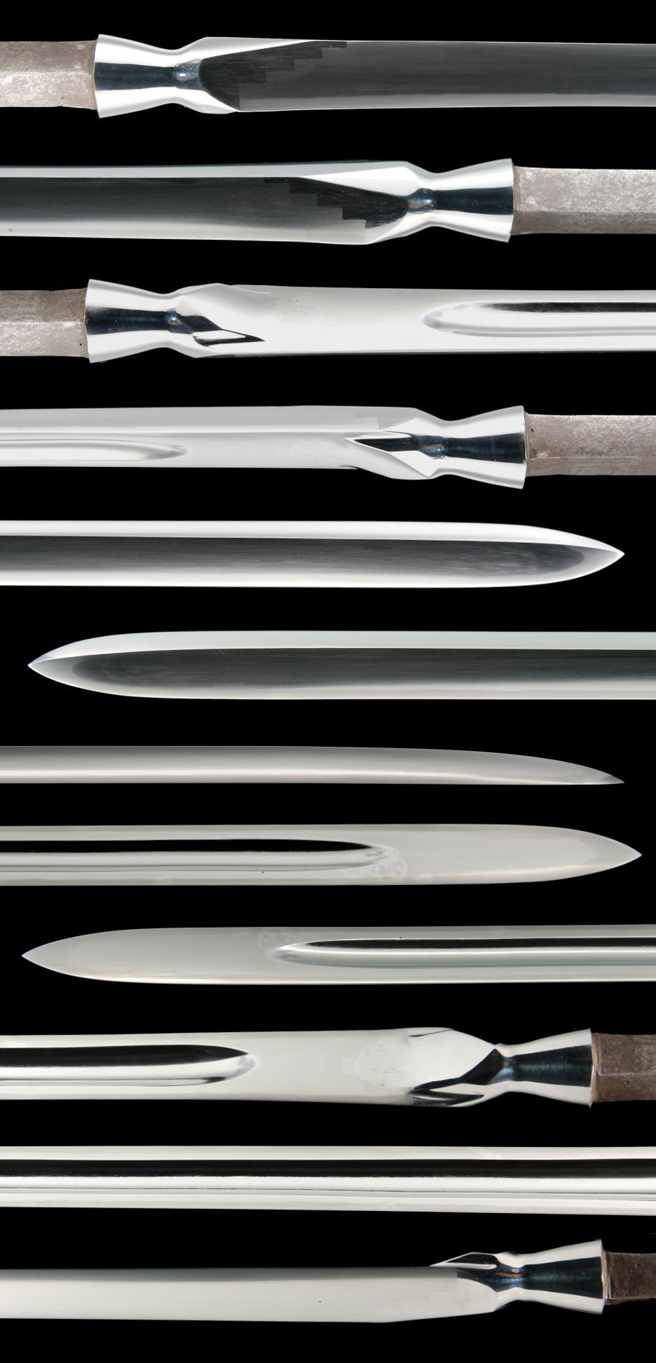 刃長:Blade length(Cutting edge): 102.2cm(三尺三寸七分三厘) 反り:Curve(SORI): -cm 元幅:Width at the hamachi(Moto-Haba): 3.32cm 元重:Thickness at the Moto-Kasane: 1.7cm 先幅:Wide at the Kissaki(Saki-Haba): 2.52cm 先重:Thickness at the Saki-Kasane: 1.2cm 拵全長:Length of Koshirae : 203cm 茎:Sword tang(Nakago): 生ぶ、化粧筋違い鑢目、目釘孔二